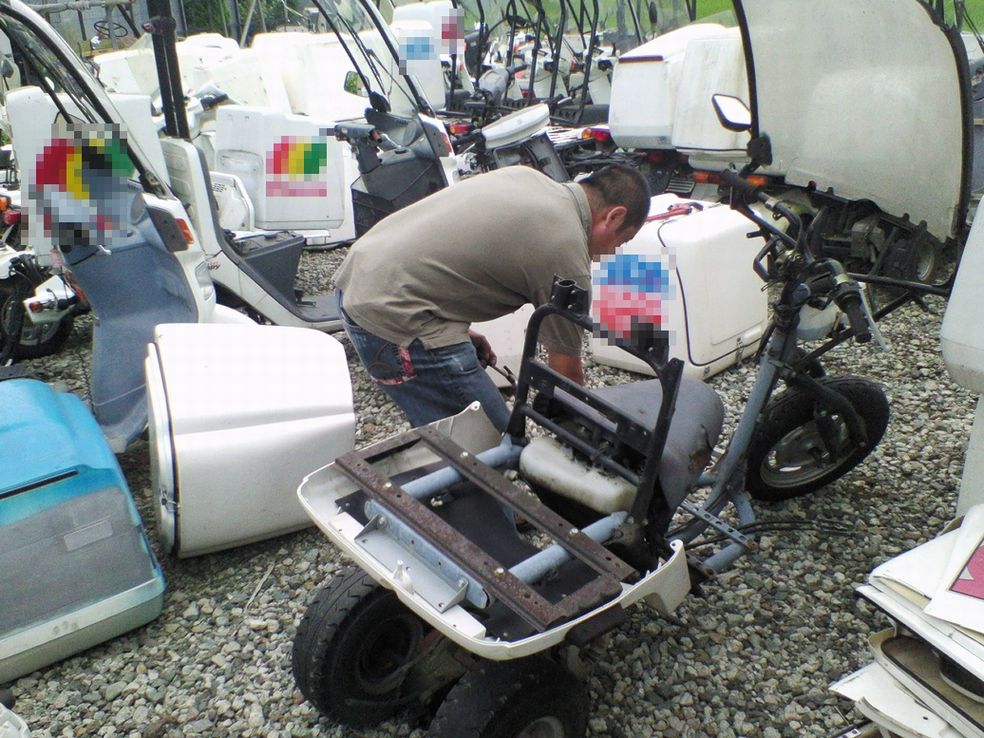 午後過ぎから秘密工場に移動、部品取りの車体を物色中のけんちゃん